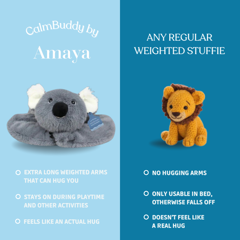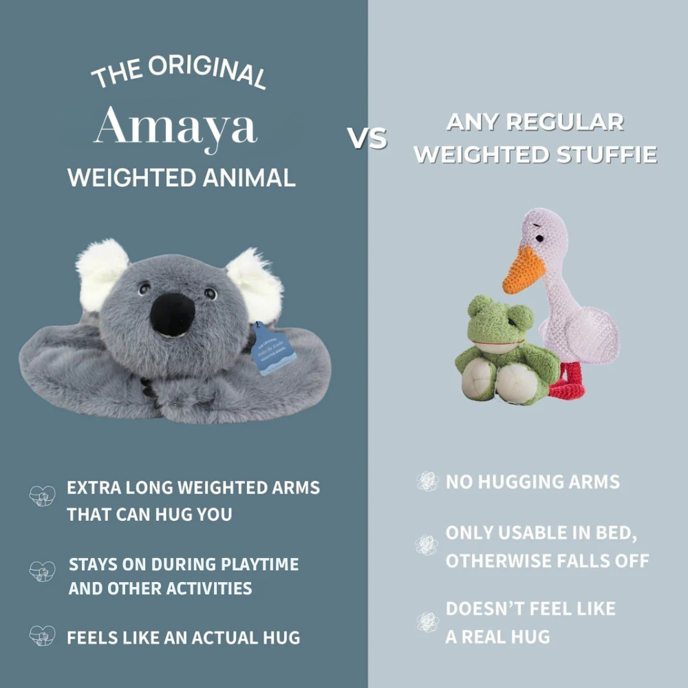 That’s why we designed our weighted animals differently. Our weighted animals have extra-long, weighted arms that wrap around your child and actually stay put while they do their homework, read, or scroll their phone. They are like a wearable weighted blanket, but so much more cuddly and practical!